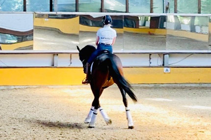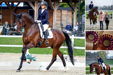 Montenegro fand ein neues Zuhause bei Lea in Rheinland-Pfalz. Inzwischen wurde bereits der erste Sieg in einer Dressurprüfung eingefahren. Herzlichen Glückwunsch!Carolina und FINN mit erstem Turnierstart in den USA