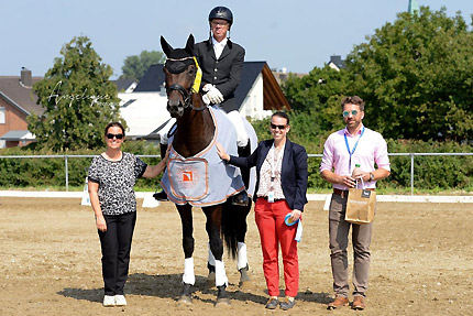 Sieger im Preis der Equus Finest Sportpferde GmbH und der Fintes Deutschland GmbH, Ehrenpreis gegeben von Childéric DeutschlandDressurpferdeprüfung der Klasse M
