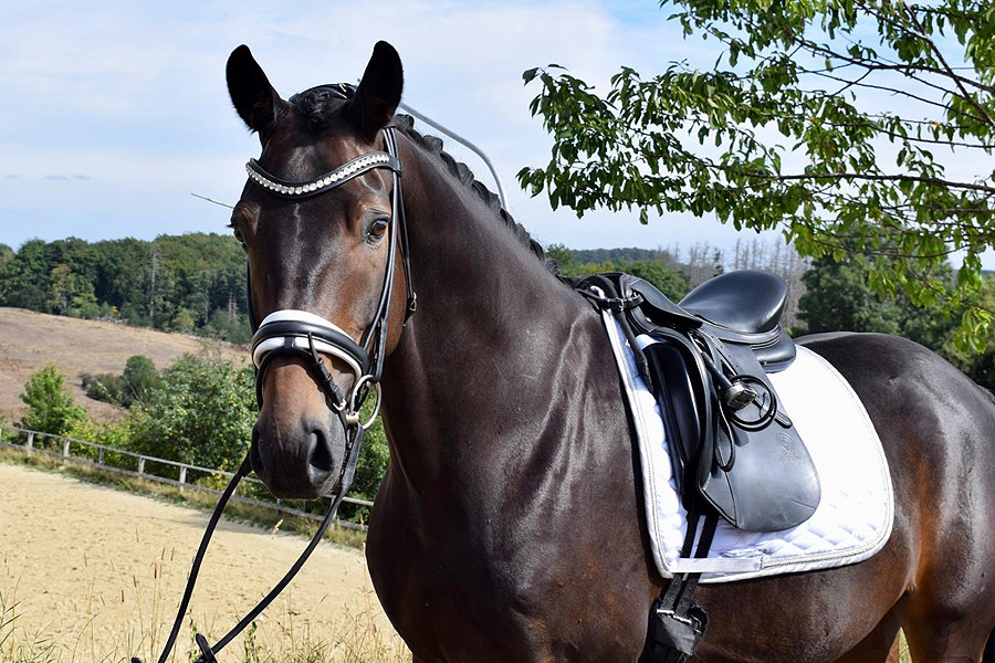 Sympathischer und routinierter Turnierbegleiter mit toller Qualität und super Interieur. Siegreich in der Klasse M vorgestellt - S-platziert. Direkt einsetzbar bis Prix St. Georges. Ein tolles Lehrpferd zum Beispiel für Junioren, Junge Reiter oder Children.